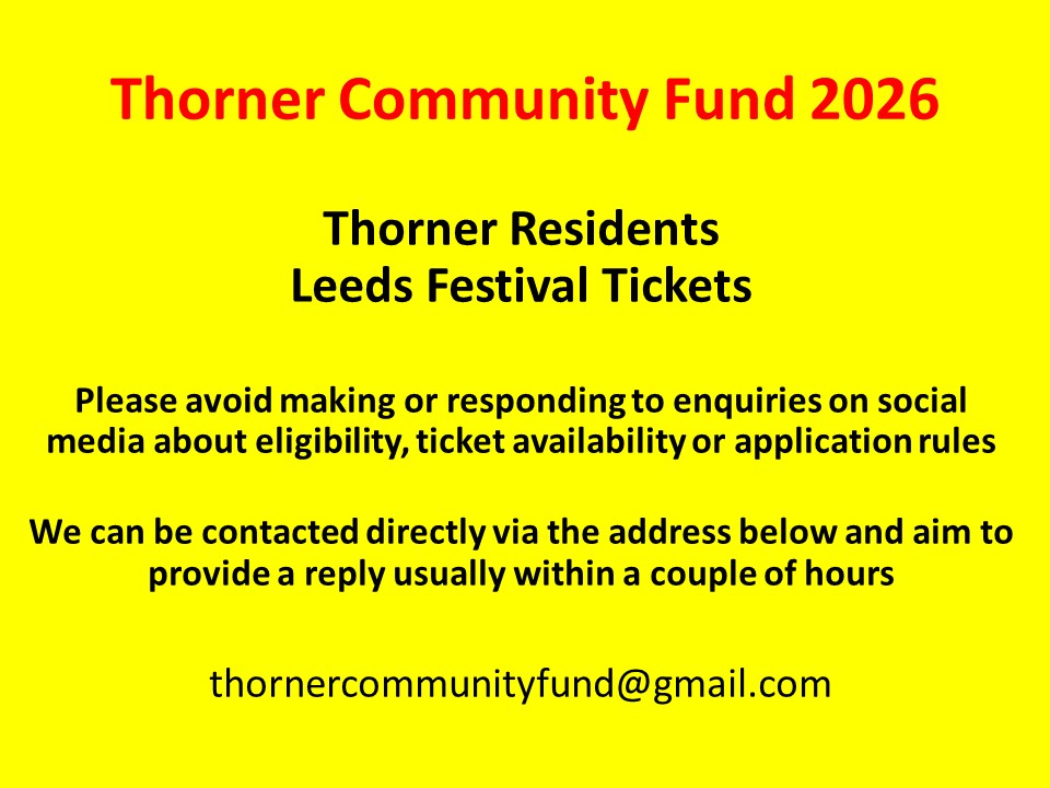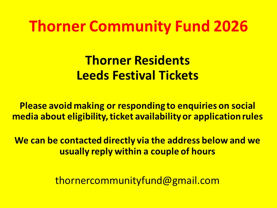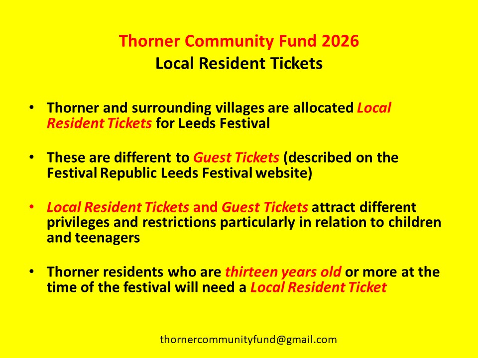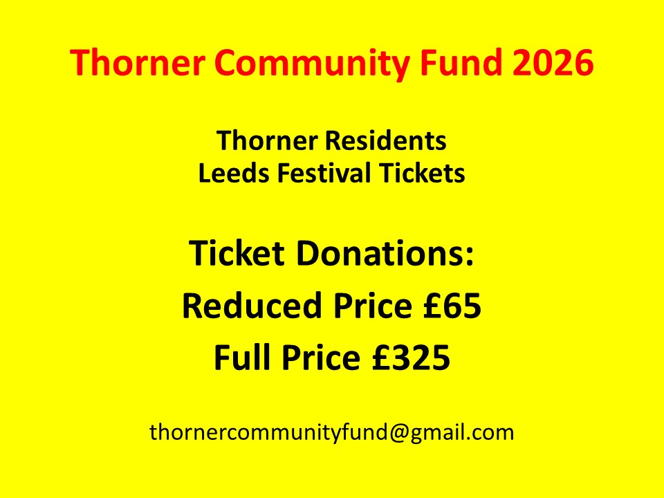 It’s that time again – Leeds Festival 2026 – Ticket Registration for Thorner Residents – Sunday 19 April 2026 Thorner Victory Hall – Thorner Community Fund