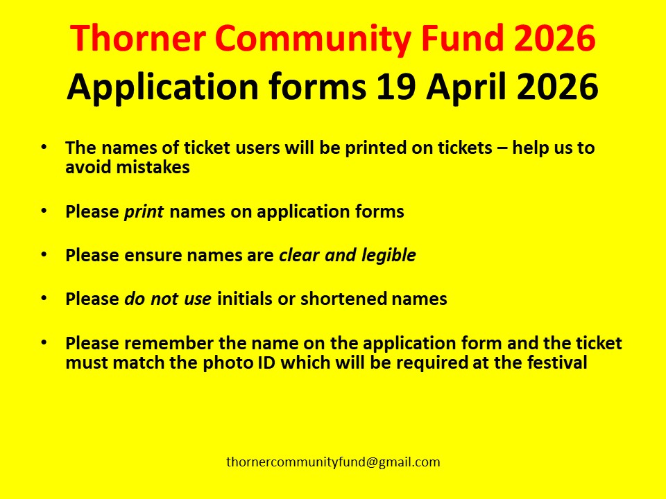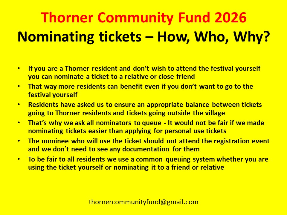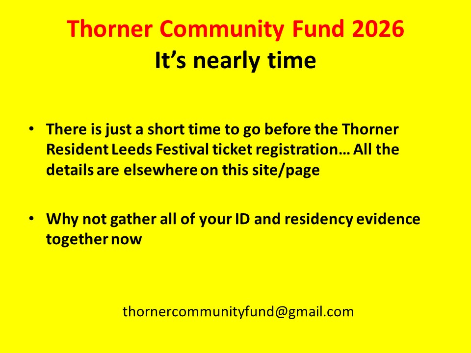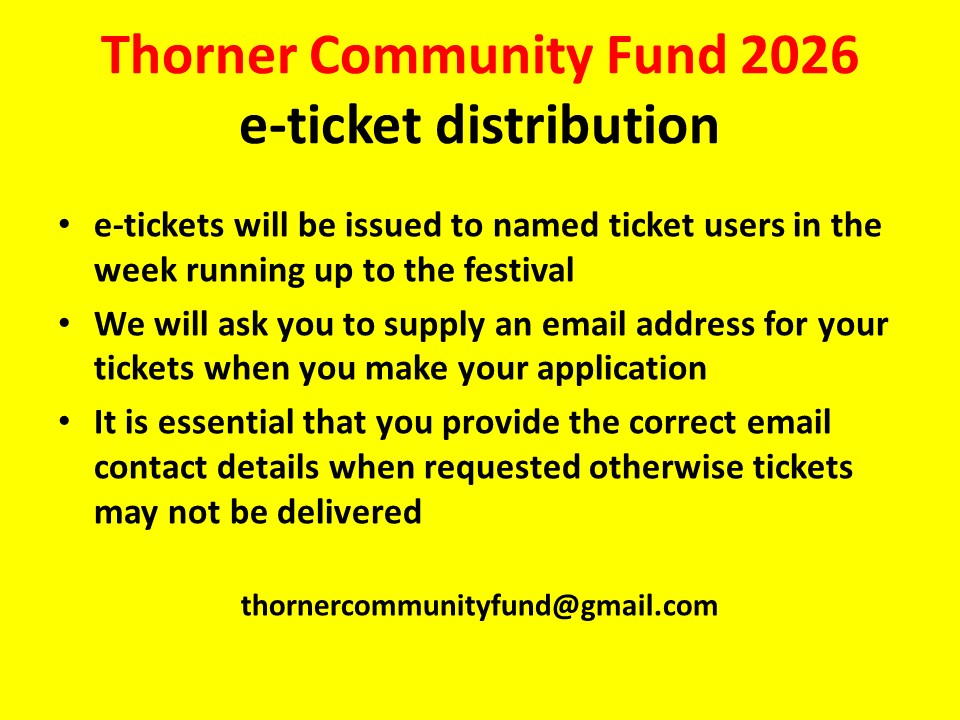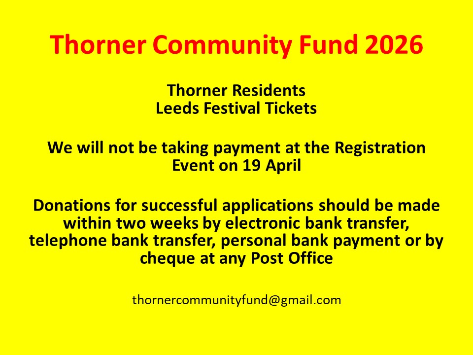 It’s that time again – Leeds Festival 2026 – Ticket Registration for Thorner Residents – Sunday 19 April 2026 Thorner Victory Hall – Thorner Community Fund